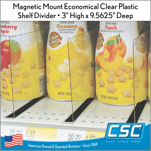 - Economical Clear Plastic Magnetic Mount Shelf Divider.